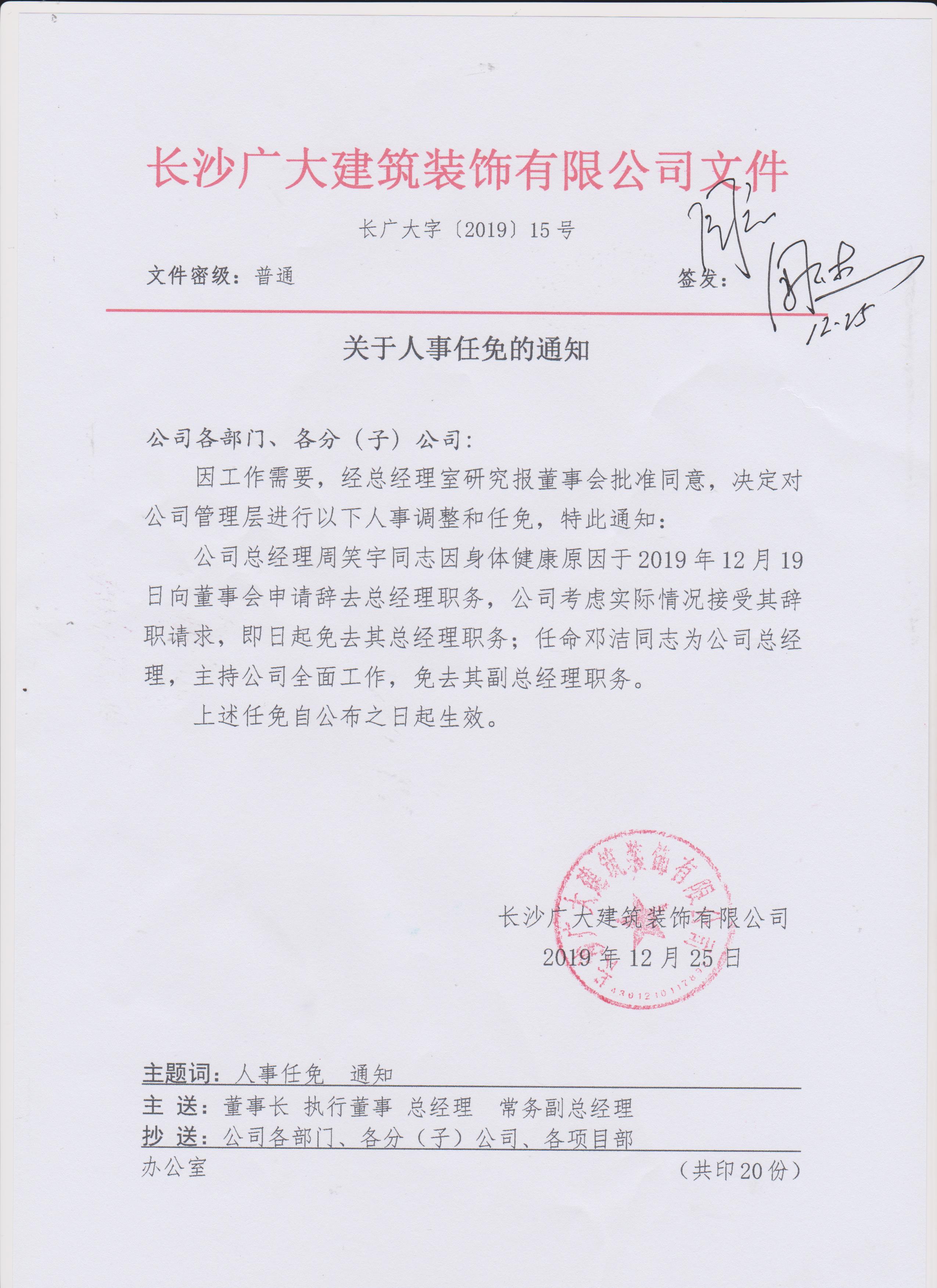 長沙廣大建筑裝飾有限公司(原名長沙縣建筑裝飾工程公司)成立于1986年,注冊資本10080萬元,注冊地址為長沙縣福臨鎮,2001年由鄉鎮集體企業改制為股份制民營企業,2012年入駐萬象新天企業公館(芙蓉區車站北路),現具有8個專業承包一級資質,3個甲級設計資質、2個總承包資質。公司現有員工近千人,立足湖南,輻射全國,擁有北京、上海等15家分公司及分支機構、5家子公司(湖南萬眾建筑安裝工程有限公司、湖南廣星企業管理有限公司、湖南小蜘蛛智能科技有限公司、長沙廣信建筑勞務有限公司、長沙廣銘建筑勞務有限公司)。